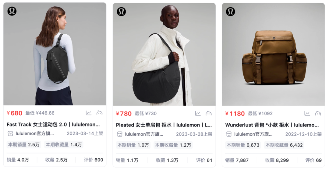 根据知衣数据,lululemon天猫旗舰店上的包款单品亦有不俗销量,如“Fast Track 女士运动包 2.0”,2024年销量已经超过了2.5W,单品销售额超1700W元。