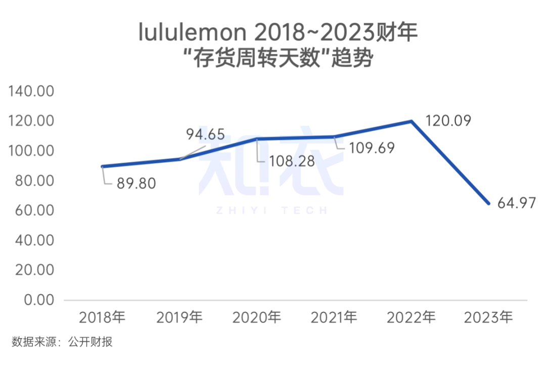 另一个在2023年显著变化的指标是“存货周转天数”,lululemon 2023年的存货周转天数从2022年的120.09猛降至2023年的64.97,说明存货变现速度加快,流动资金使用与存货管理工作效率提升,市场反应速度也随之改善。这与lululemon提高生存能力来应对不确定环境的大方向是一致的。