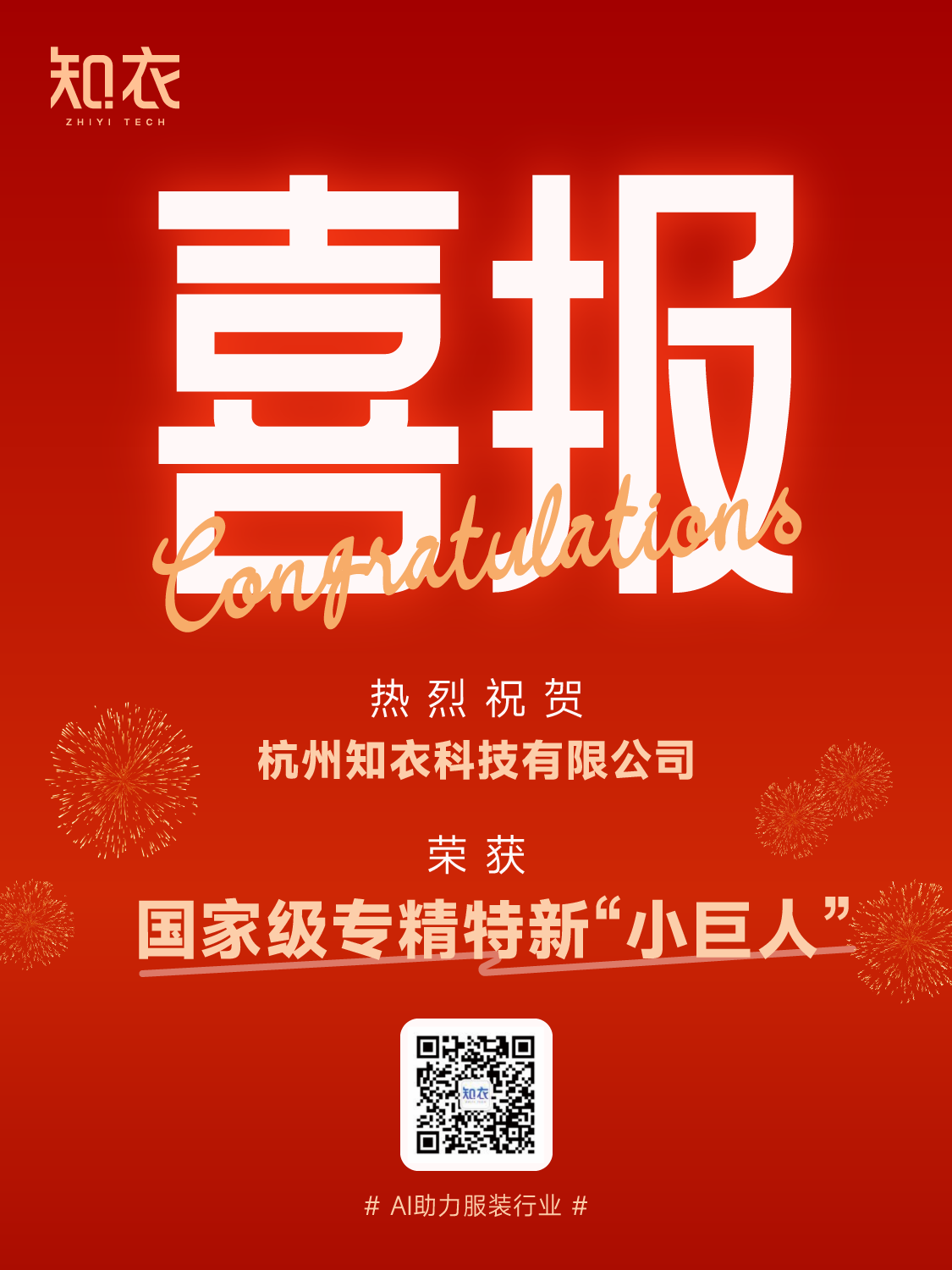 近日,浙江省经济和信息化厅官网公示了《关于浙江省第七批专精特新“小巨人”企业和2025年专精特新“小巨人”复核通过企业名单》,知衣科技成功获得国家级专精特新“小巨人”企业认定,技术实力、创新能力与行业地位再次获得权威认可。