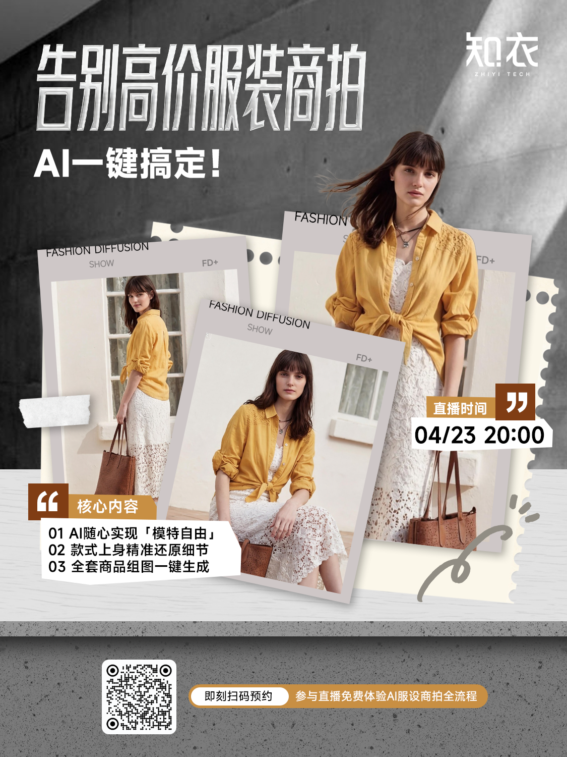 受够了昂贵的摄影棚和模特费?想要一天产出上百张绝美商拍大片?这次直播,我们手把手教你用FD+把服装商拍的成本打下来! 4月23日 20:00直播